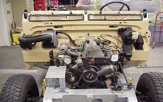 Bulkhead in place on frame with Mercedes engine |